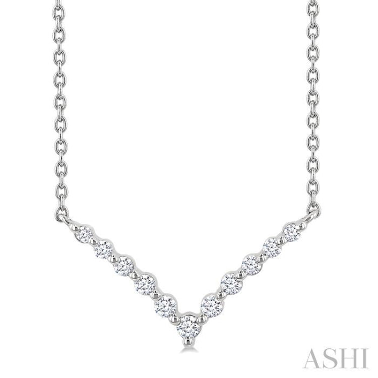 1/8 Ctw Petite Chevron Round Cut Diamond Pendant With Chain in Sterling Silver