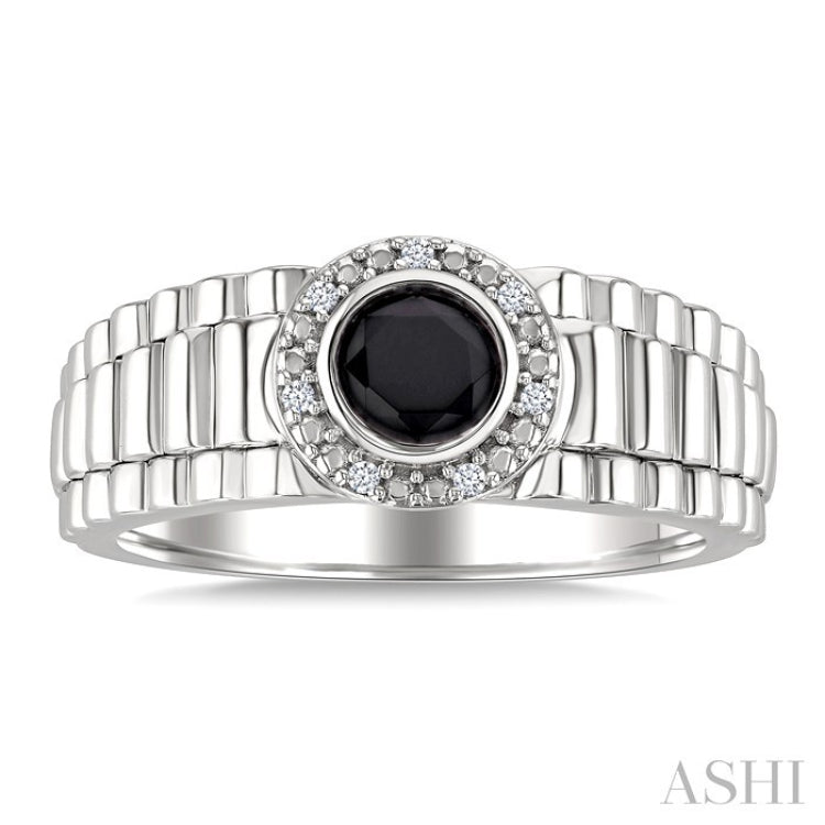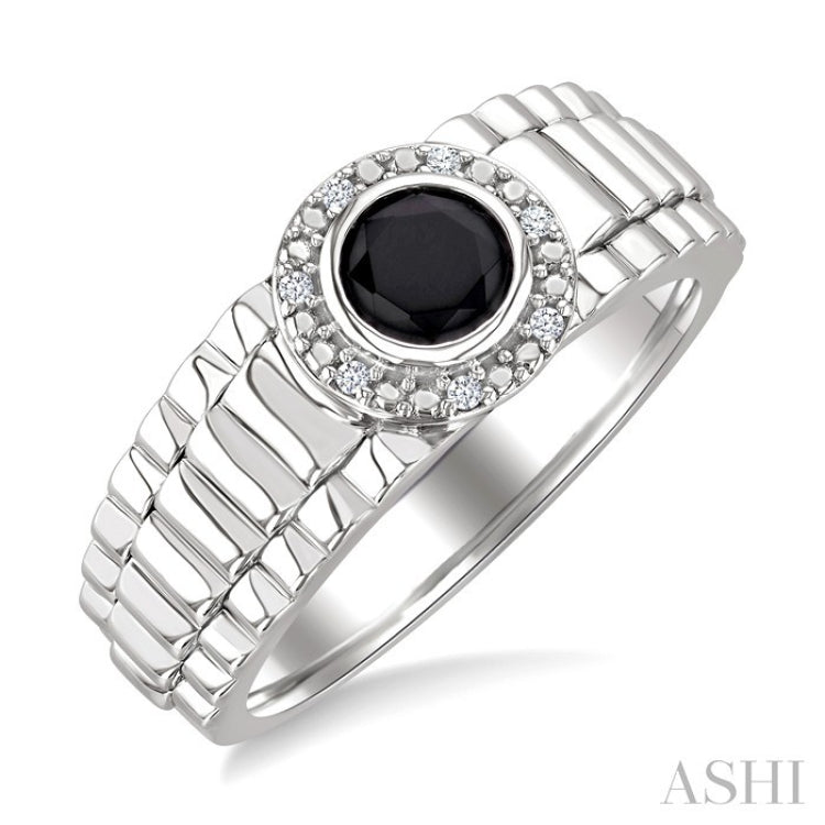 6 MM Round Shape Onyx and 1/20 Ctw Single Cut Diamond Semi-precious Men's Ring in Sterling Silver